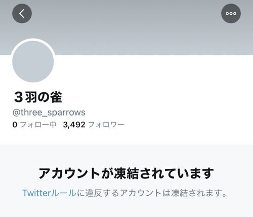 2021/1/14に3羽の雀 @three_sparrows のツイッターアカウントが凍結されました。Twitter社の不当な処置に抗議します。