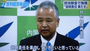 「甘利明経済再生担当相は20日夕、政治とカネに関する明日発売の一部週刊誌報道について「国民に疑惑を持たれないよう説明責任を果たす」と繰り返した。自身の進退については会見の場で明言せず、首相には「全く相談していない」と語った。」